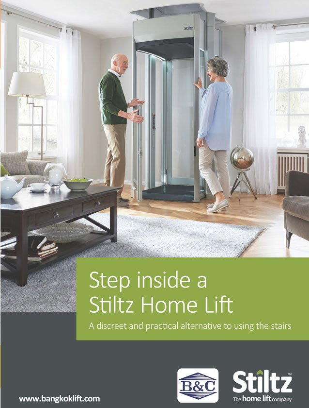 แม้พื้นที่จะมีจำกัด แต่ด้วยลิฟท์บ้านขนาดเล็ก STILTZ รุ่น DUO ที่มีขนาดเล็กที่สุดในตลาด ทำให้สามารถติดตั้งได้อย่างสบาย นอกจากนี้ยังมีรุ่น TRIO เพิ่มความสะดวกสบายในขนาดที่วีลแชร์สามารถเข้าได้ ลิฟท์บ้านเป็นลิฟท์ที่ได้รับความนิยมในอังกฤษและยุโรป เพราะมีเอกลักษณ์เฉพาะตัวลิฟท์สามารถติดตั้งได้แม้กระทั้งในห้องนอน หรือห้องแต่งตัว